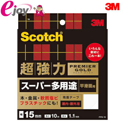 | 【スリーエム 3M】スリーエム 3M PPS-15 スコッチ 超強力両面テープ プレミアゴールド(スーパー多用途) 15mm×10m 1,617円 つきにくいプラスチックにも接着できます。屋内だけでなく、屋外でも使用可能です。木、金属、塩化ビニール、プラスチック、軟質塩化ビニールに。色:白幅(mm):15長さ(m):10厚さ(mm):1.1粘着力:32N/10mm使用温度範囲:-20〜... |